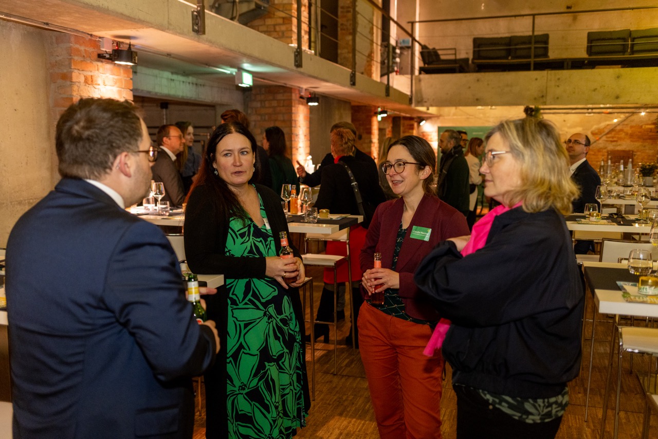 Die hochkarätige Rednerliste trug dazu bei, das Event zu einem informativen und inspirierenden Abend zu machen. So sprach u.a. Mona Neubaur, Ministerin für Wirtschaft, Industrie, Klimaschutz und Energie des Landes Nordrhein-Westfalen, die ihre Perspektiven zu aktuellen wirtschaftlichen Entwicklungen teilte. Carolin Schenuit, Geschäftsführende Vorständin des Forums für Ökologisch-Soziale Marktwirtschaft, berichtete in ihrem Beitrag zu ihrer Expertise zu nachhaltigen Wirtschaftsmodellen. Wolfram Günther, erster stellvertretender Ministerpräsident des Freistaates Sachsen, betonte die regionale Perspektive der wirtschaftlichen Transformation. Zudem konnten wir Katja Meier, sächsische Staatsministerin der Justiz und für Demokratie, Europa und Gleichstellung, sowie Josefine Paul, Ministerin für Kinder, Jugend, Familie, Gleichstellung, Flucht und Integration des Landes Nordrhein-Westfalen, auf unserem Empfang begrüßen.